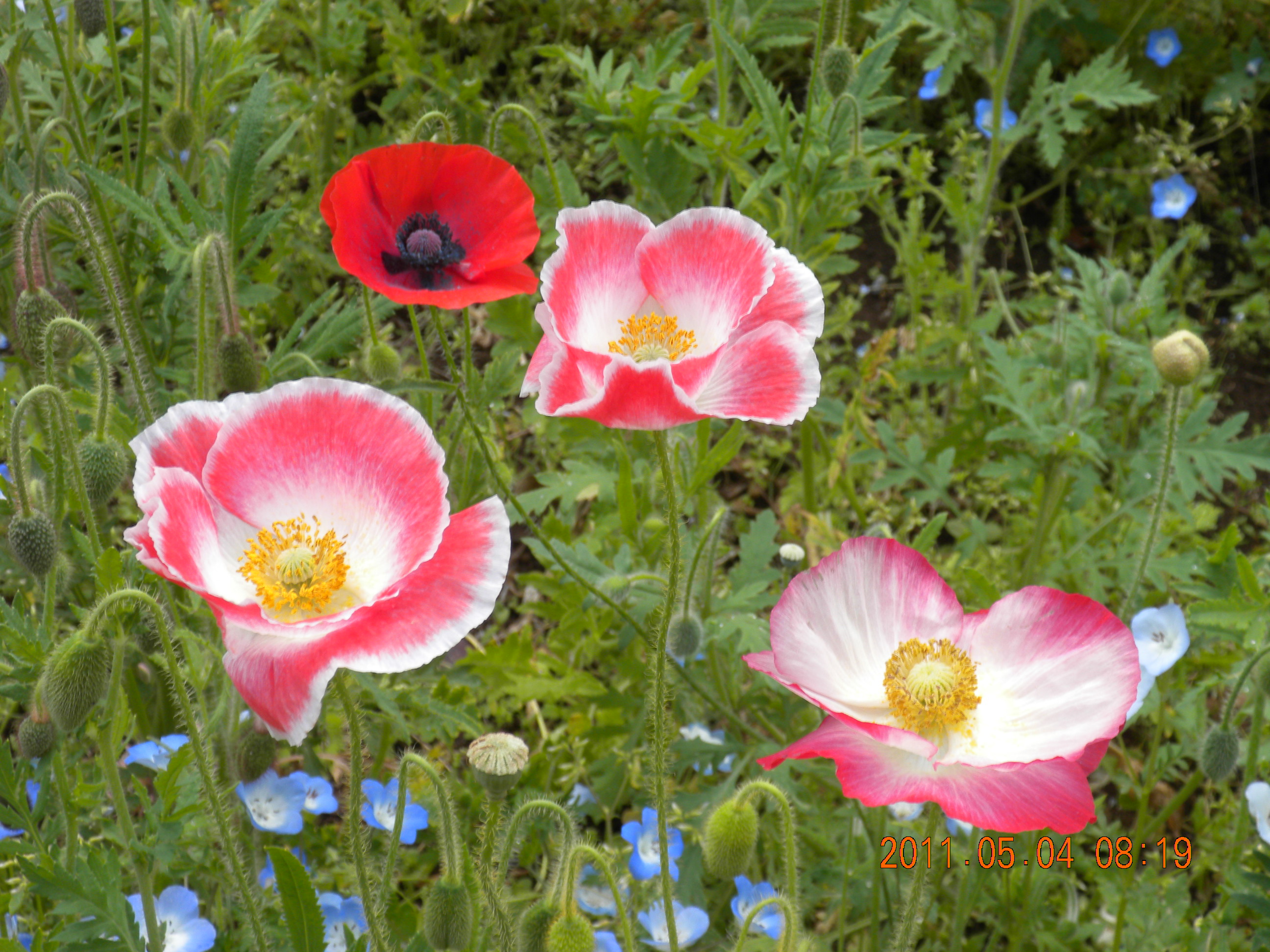 5月始めの三浦半島表街道は、陸地は花が、海は軍艦が精気を漲らせている。丘のあちこちにはポピーを始め優雅な花が妍を競い、日米海軍基地のバースには、東北沖の捜索活動から帰った獰猛が、漸くの安らぎを得てひしめきあっている。例えてみれば”赤と黒”、”癒しと力”の競演の舞台である。古老の三笠までが復元50年と叫んでいる。初夏の三浦半島にはエネルギーが溢れている。 (2011.5.8