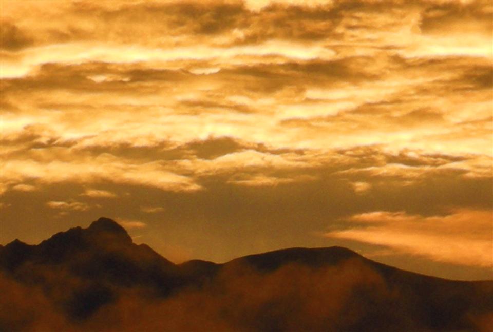夕方のゲリラ豪雨が去った後、西空が金色に輝いているのに見とれてしまい 、気が付いてカメラを取りに戻ったのでシャッター・チャンスを