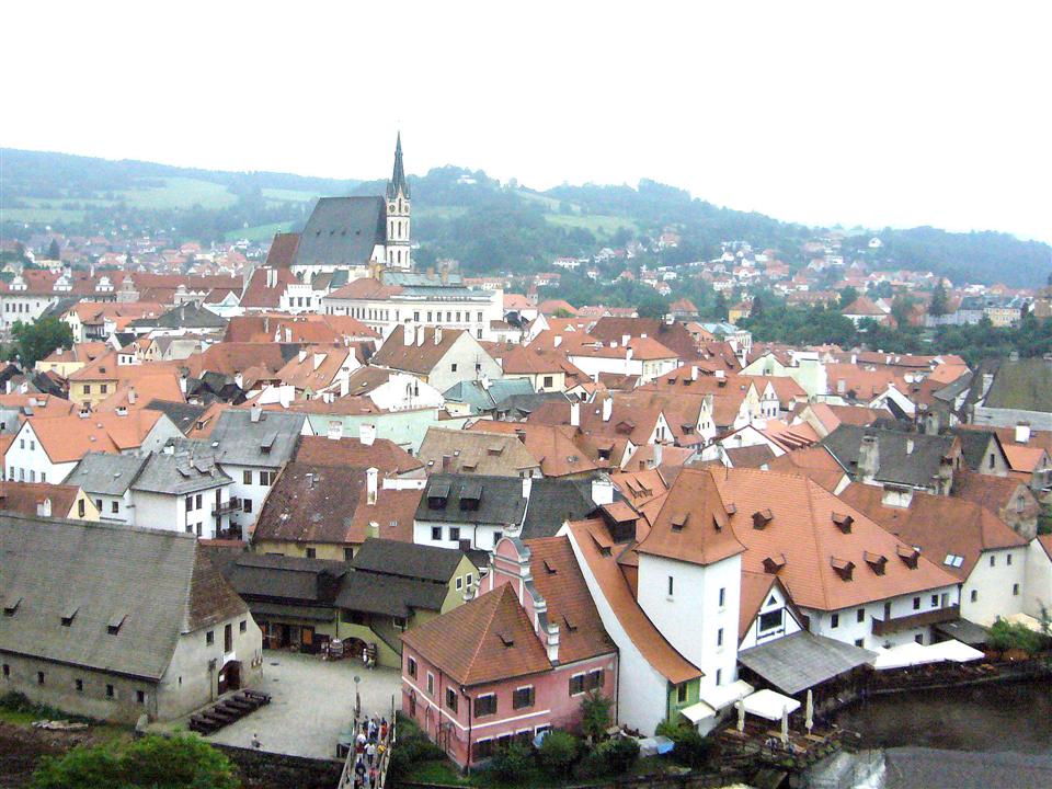 写真は本年6月中欧チェコのチェスキ−クルムロフ城を 観光したとき、眼下の旧市街を撮ったものです。