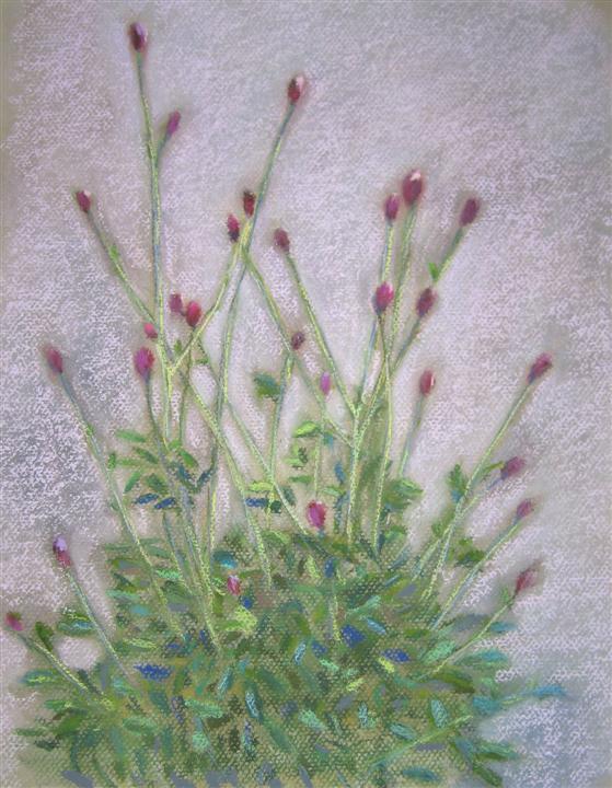 昨年買った小さな苗が 80cmほどに育ち、花穂が赤くなってきたので、パステルを取り出しスケッチした。