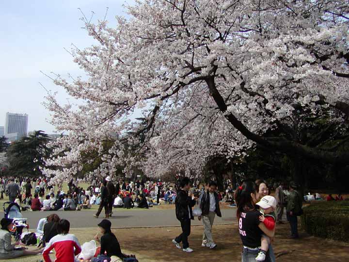 新宿の桜の名所、家族連れ、近場のサラリーマンでにぎわう昼下がりの新宿御苑です。(2003年4月1日撮影)