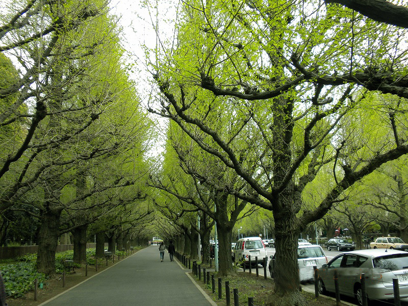 のは1組のカップルだけだ。新緑の銀杏並木は都心のオアシスであり、心の癒されるすばらしい散歩コースである。